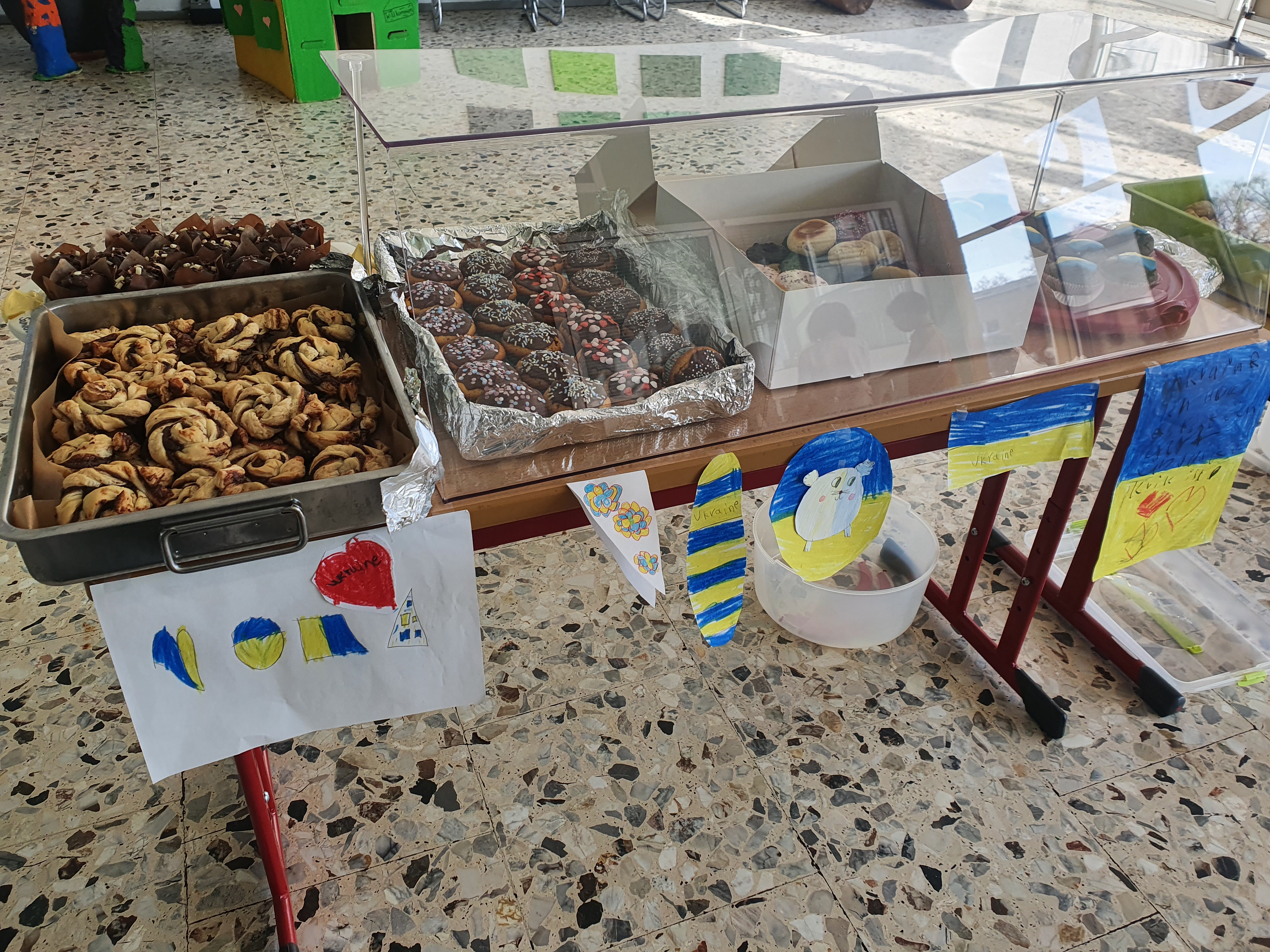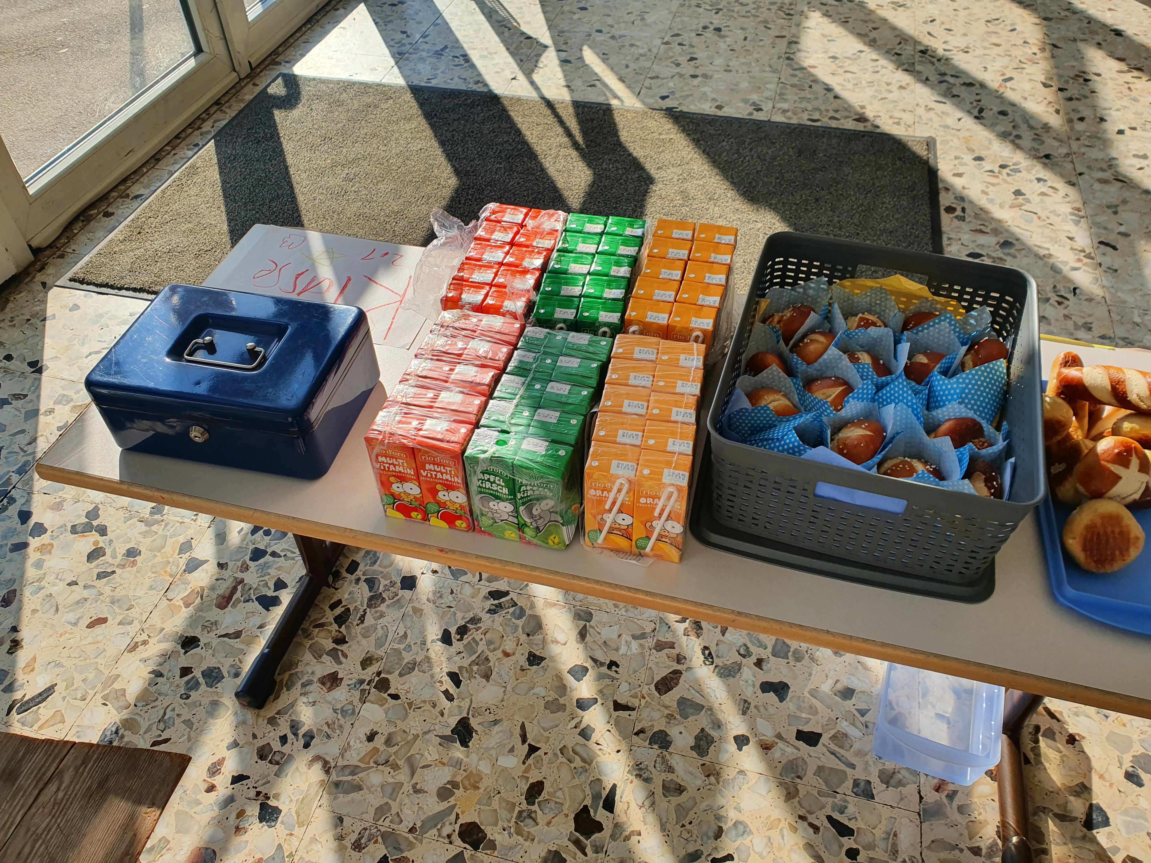 Die Kinder der Klasse 2.1 verkauften am vergangenen Mittwoch Muffins, Amerikaner, Brezeln und anderes feines Gebäck. All diese Köstlichkeiten wurden zuhause von den Kindern und ihren Familien gebacken und zum Verkauf gestiftet. Vielen lieben Dank an alle Eltern für diese tolle Unterstützung.
