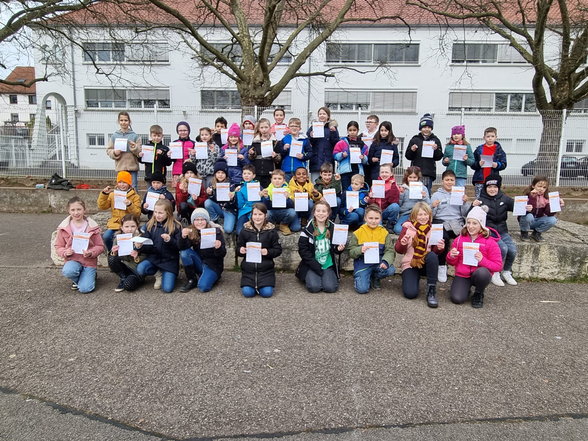 Nach einer coronabedingten Pause konnten sich viele Kinder vor den Faschingsferien wieder über das Sportabzeichen freuen. 113 Schülerinnen und Schüler sowie 2 Lehrerinnen bekamen in großer Runde ihr Sportabzeichen für 2022 überreicht. Für die meisten Kinder steht jetzt schon fest, dass sie auch 2023 wieder dabei sein möchten!