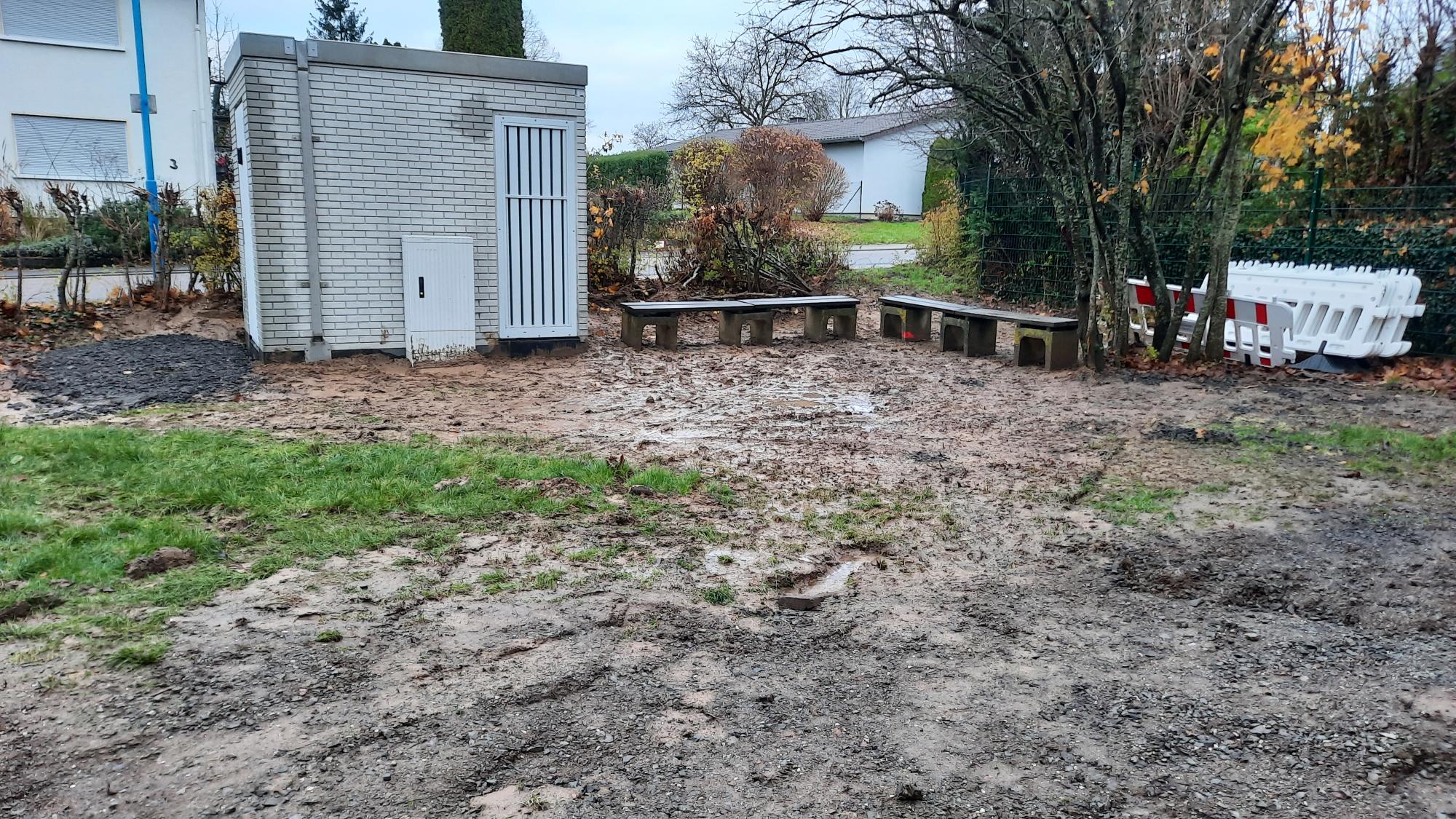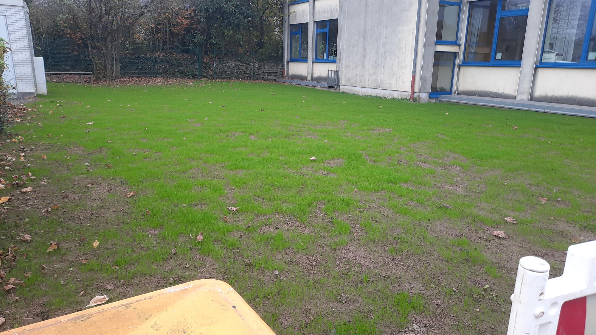 Seit das Trafohäuschen für das Internet auf den Schulhof gestellt wurde, gab es nur noch Matsch und Schotter, aber fast keine Rasenfläche mehr.