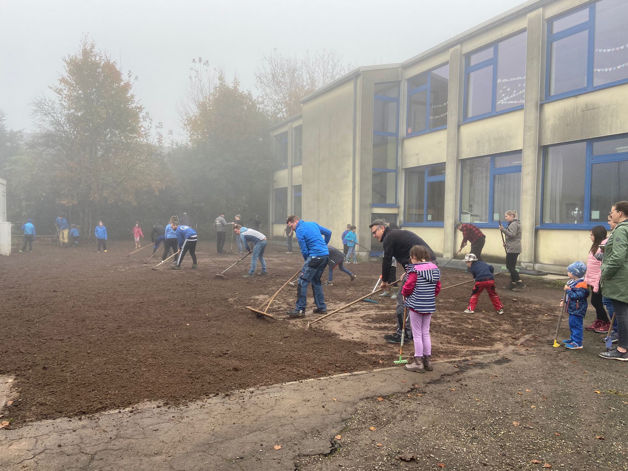 Vielen Dank nochmal an alle Eltern und Kindern, die bei der Organisation oder dem Arbeitseinsatz in den Herbstferien geholfen haben das ehemalige Fußballfeld der Grundschüler in Aßweiler wieder herzurichten. Des Weiteren möchten wir uns auch ganz besonders bei Herrn Christian Ruffing von Garten- und Landschaftsbau Ruffing für den Aushub und Herrn Frank Becker von der TERRAG GmbH für die Mutterbodenspende bedanken. Mit ihrer Unterstützung und dem Arbeitseinsatz können unsere Schüler und Schülerinnen im kommenden Jahr wieder in den Pausen Fußball spielen, ohne sich die Hände und Beine aufzufallen.