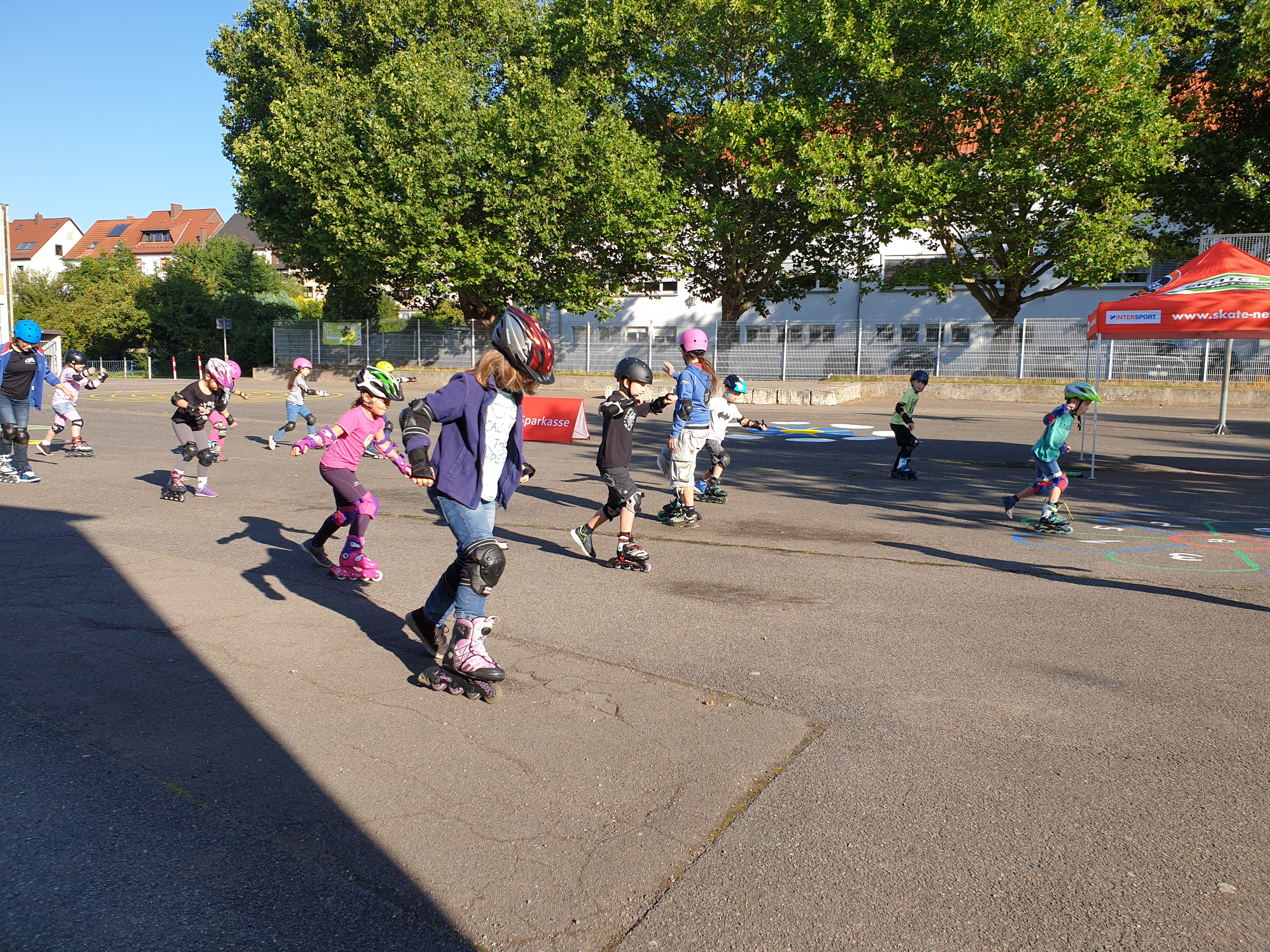 Inline Skaten findet bei uns in der Regel zu Beginn der 2. Klasse statt und wird auf dem Schulhof durchgeführt. Das Training dauert normalerweise 2 Stunden und wird von mehreren Skatetrainern betreut. Diese leiten an, wie man richtig fällt, geben Tipps, wie das Skaten noch besser klappt und bieten erfahrenen Kindern weiterführende Übungen an. Zum Abschluss dürfen alle Kinder gemeinsam einen Skateparcours durchfahren.