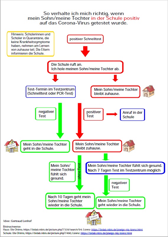 Liebe Eltern, auf diesen beiden Grafiken können Sie erkennen, wie Sie auf positive Tests in und außerhalb der Schule reagieren sollen.