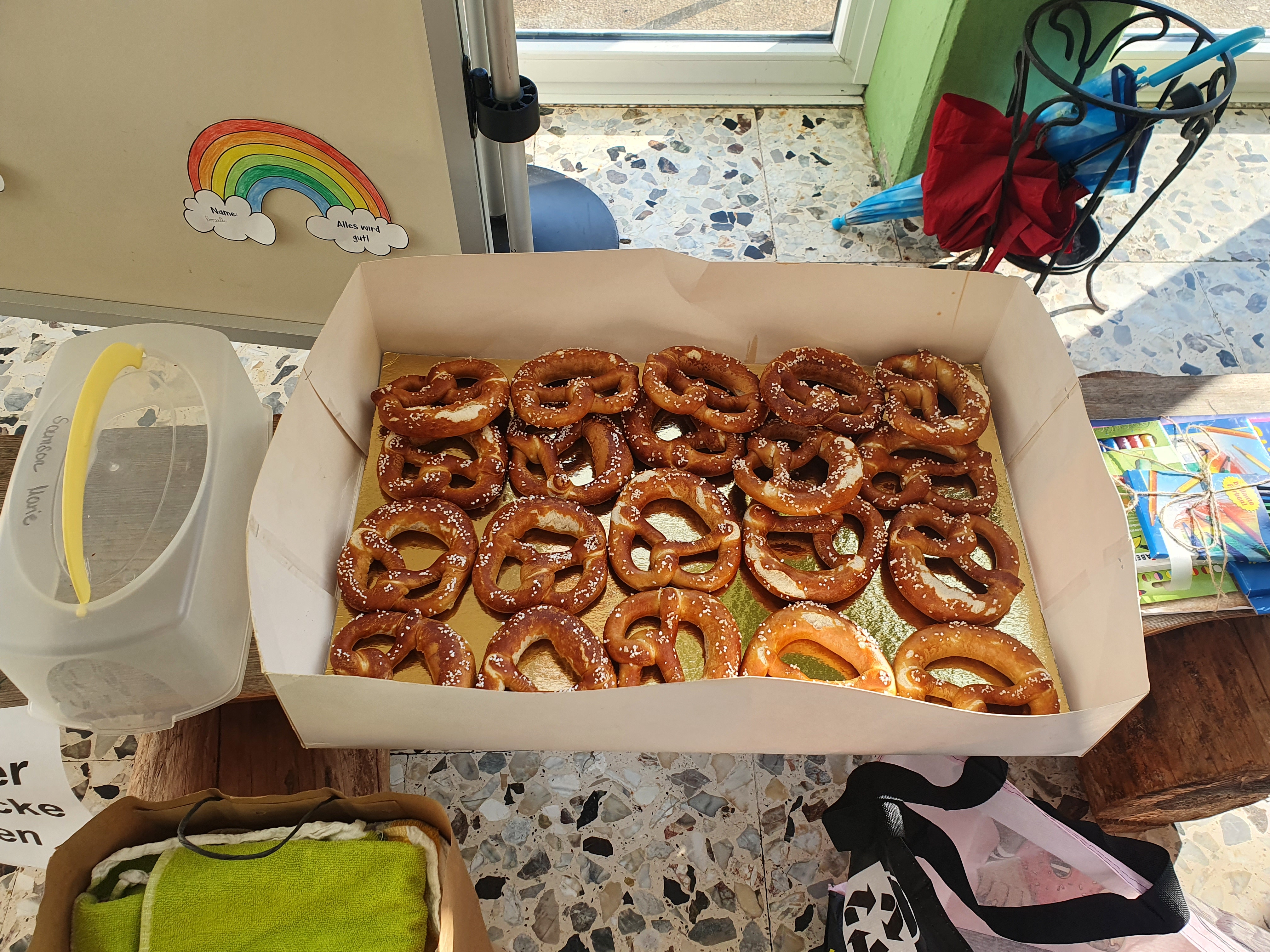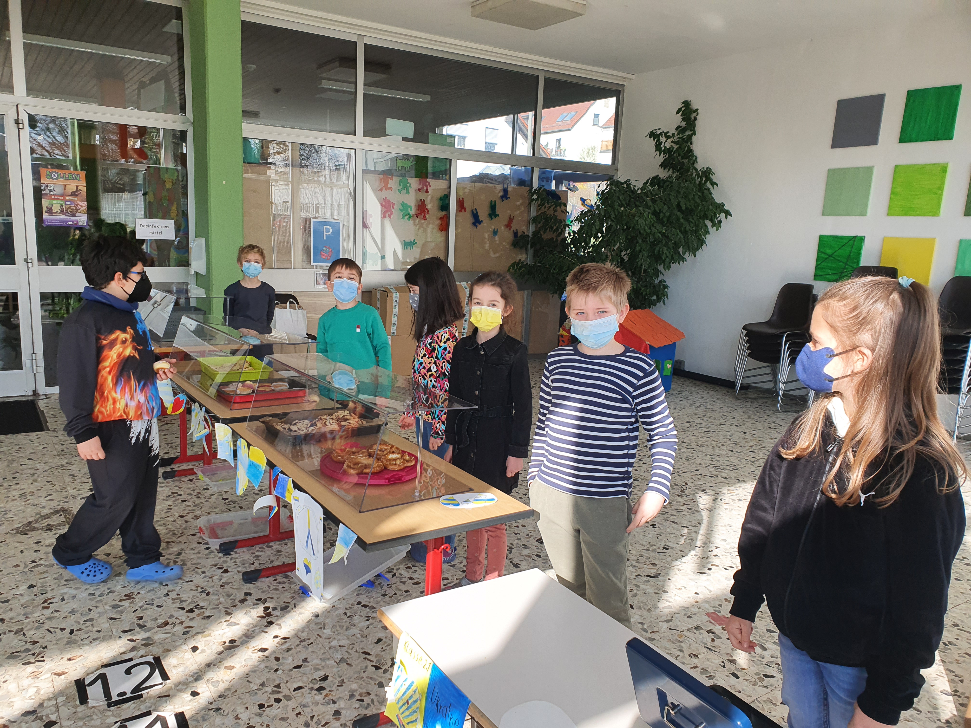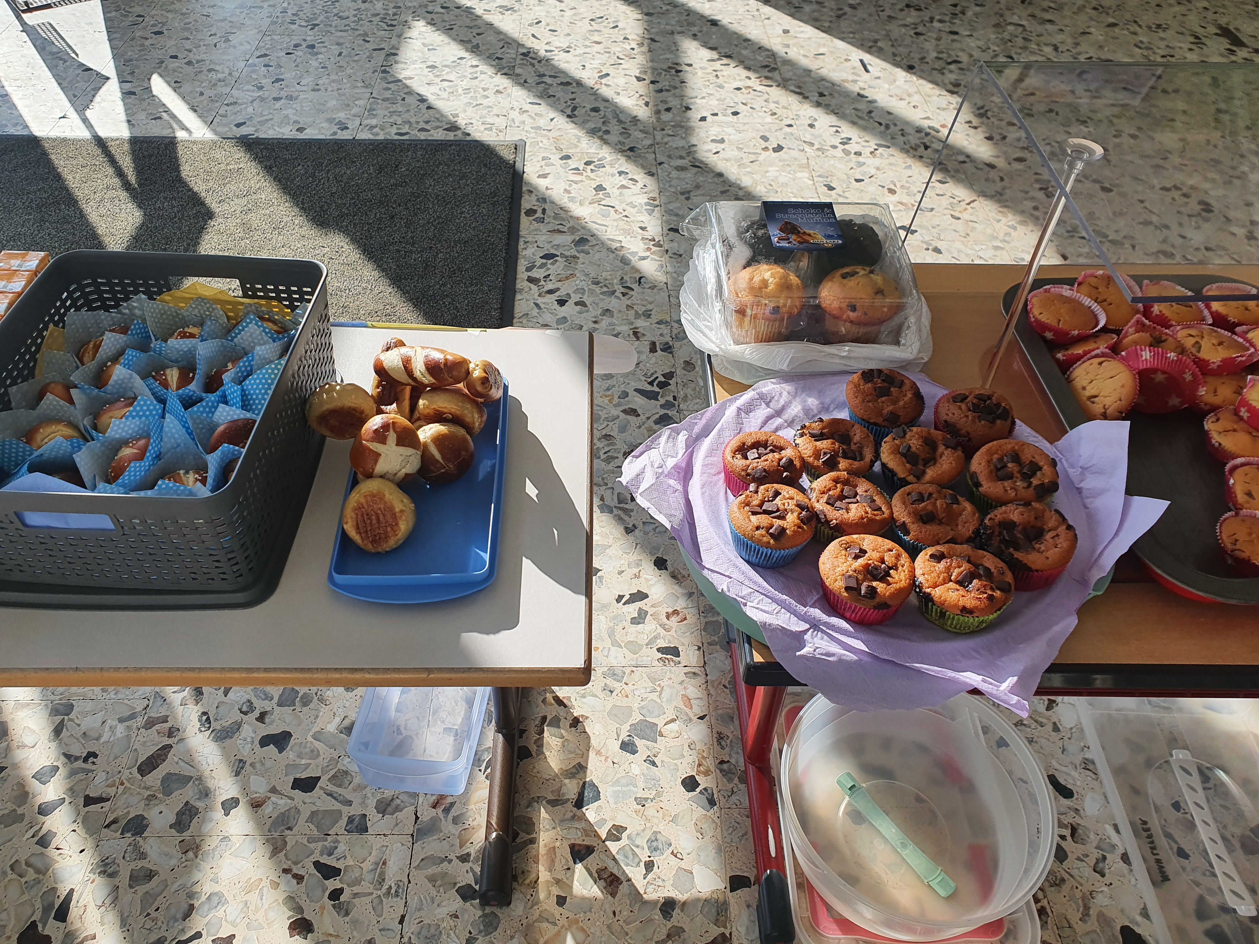 Die Kinder der Klasse 2.1 verkauften am vergangenen Mittwoch Muffins, Amerikaner, Brezeln und anderes feines Gebäck. All diese Köstlichkeiten wurden zuhause von den Kindern und ihren Familien gebacken und zum Verkauf gestiftet. Vielen lieben Dank an alle Eltern für diese tolle Unterstützung.