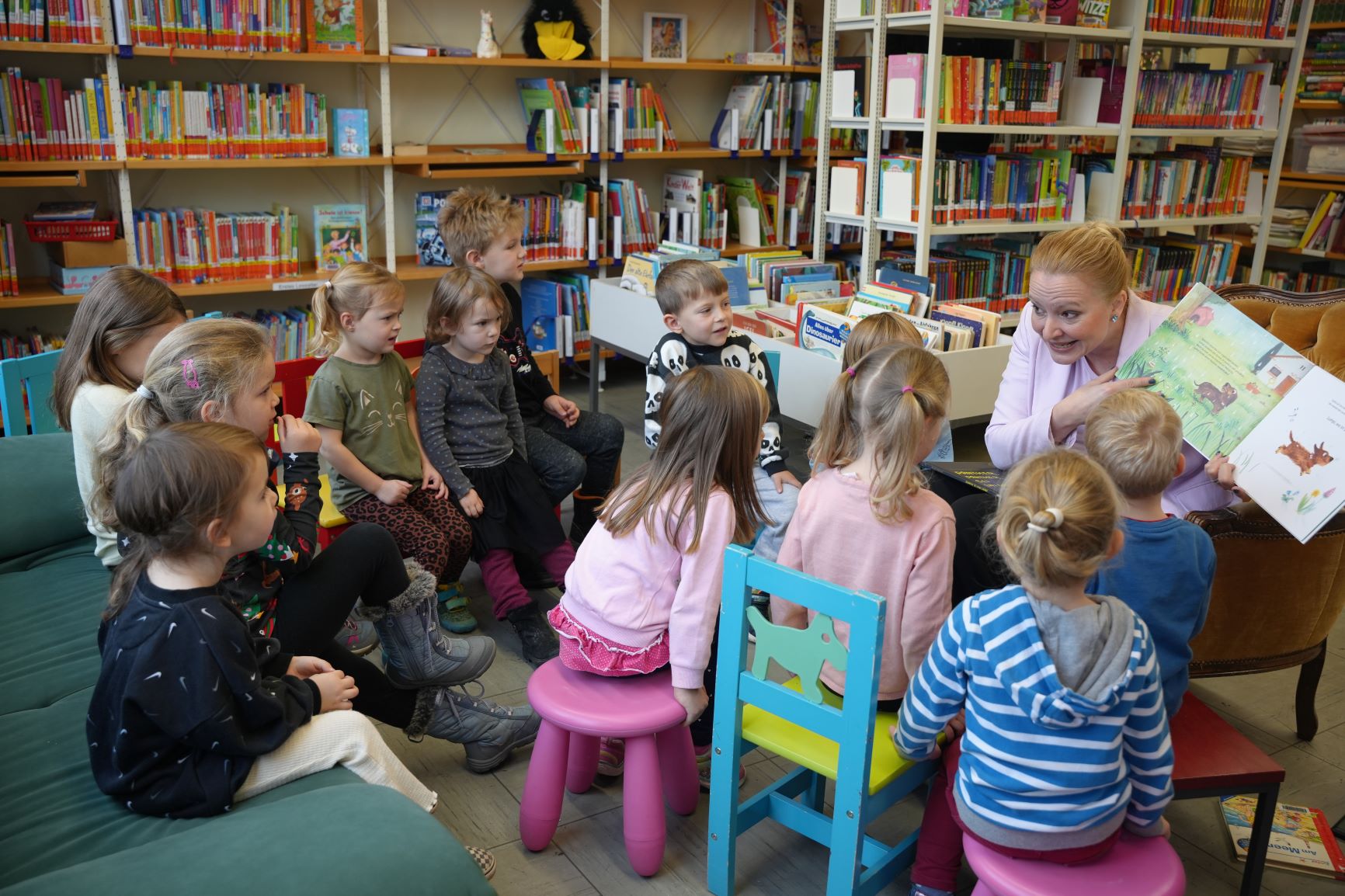 Aus dem Fundus der Medienboxen las Bildungsministerin Christine Streichert-Clivot einer Kitagruppe und einer zweiten Klasse der Grundschule in Niederwürzbach vor. Die Kinder wollten wissen, wo der Hund Lumpi seinen Knochen versteckt hat, wie der Panther entspannter werden kann, was die Maus im Herbst so macht und wie es sich anfühlt, Bestimmer:in zu sein. „Vorlesen ist immer eine wunderbare Erfahrung und macht mir großen Spaß. Es ist schön zu sehen, wie sicher sich schon die Kleinsten hier in der Bücherei bewegen und zu hören, dass die Bücherei ein echter Bestandteil der Ortsgemeinschaft ist“, freut sich die Ministerin.